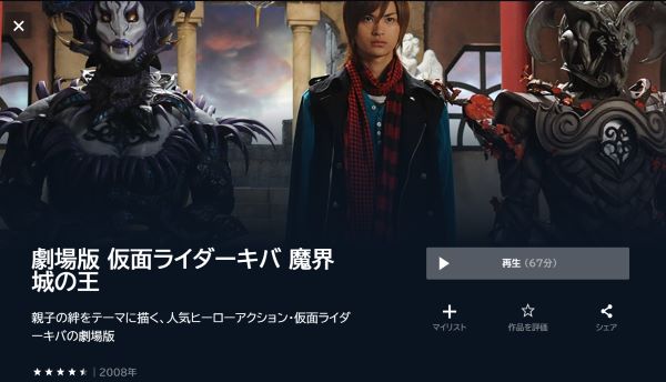 ただ、映画「劇場版 仮面ライダーキバ 魔界城の王」の関連作品の映画は配信しているので、見放題で視聴は可能です。