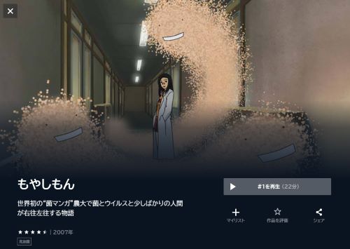 ただし無料期間がないため無料ではありませんが、アニメ「もやしもん」を全話見ることができます。