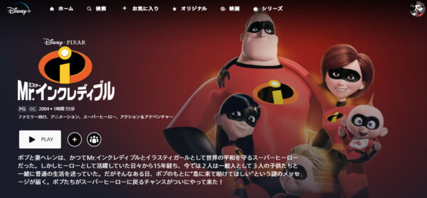 - 「Mr.インクレディブル」の他のディズニー作品も視聴可能。