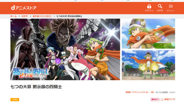 またdアニメストアは、アニメ「七つの大罪 黙示録の四騎士」のシリーズや関連動画を全話視聴できます。