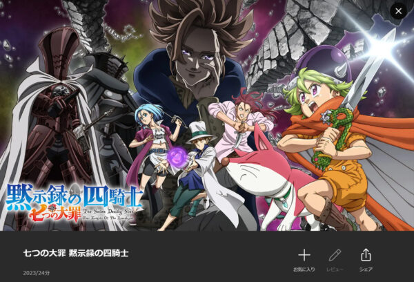 アニメ「七つの大罪 黙示録の四騎士」が全話視聴できる動画配信サイトを調査しました。