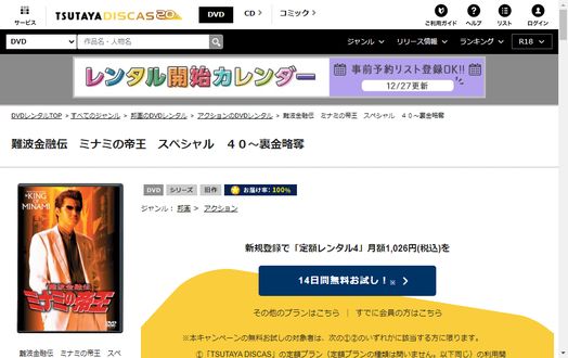 そして、映画「難波金融伝ミナミの帝王スペシャルVer.40劇場版「裏金略奪」」はツタヤディスカスで配信しているので、無料でDVDレンタルが可能です。