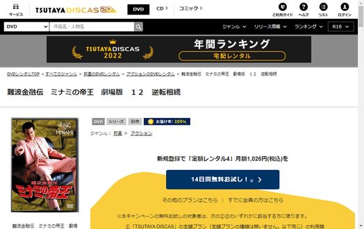 そして、映画「難波金融伝ミナミの帝王劇場版partXII「逆転相続」」はツタヤディスカスで配信しているので、無料でDVDレンタルが可能です。