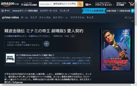 Amazonプライムビデオで映画「難波金融伝ミナミの帝王劇場版partIII「愛人契約」」をフルで無料視聴