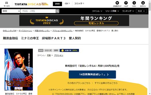 そして、映画「難波金融伝ミナミの帝王劇場版partIII「愛人契約」」はツタヤディスカスで配信しているので、無料でDVDレンタルが可能です。