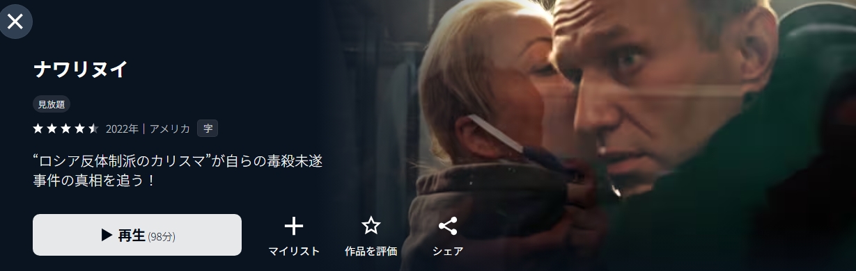 映画「ナワリヌイ」が配信してる動画配信サービスを調査しました。