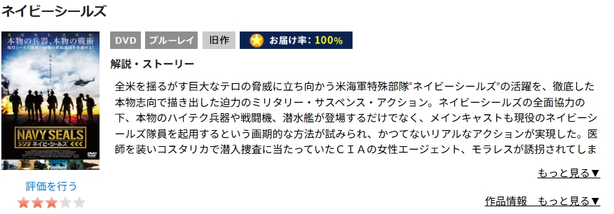 このDVDレンタルサービスを使うことで、DVDを自宅に取り寄せて、映画「ネイビーシールズ」を視聴可能です。