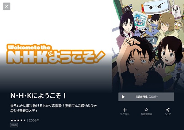 - 「N・H・Kにようこそ!」が全話見放題で視聴可能