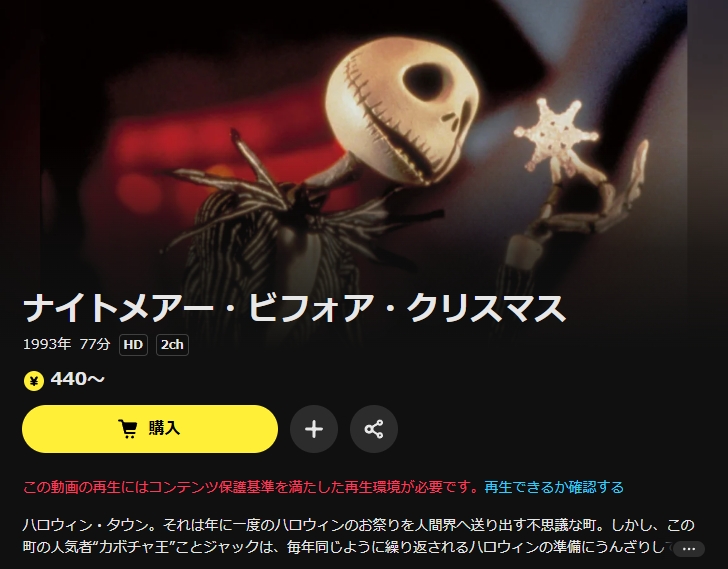 映画「ナイトメアー・ビフォア・クリスマス」と合わせて、旧作もう1枚までは追加料金なしでフル視聴可能です。