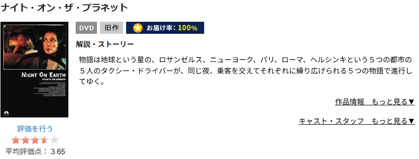TSUTAYA DISCASで映画「ナイト・オン・ザ・プラネット」をDVDレンタルしてフル視聴