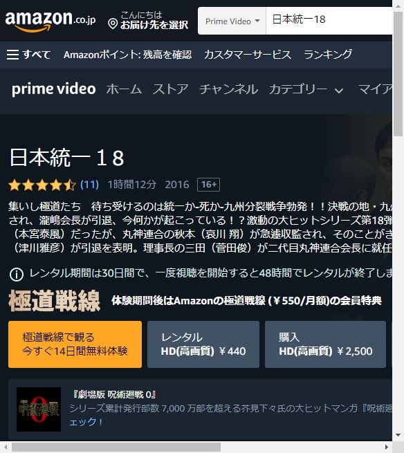 映画「日本統一18」はAmazonプライムビデオでもフルで視聴することができます。