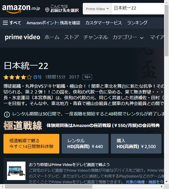 Amazonプライムビデオで映画「日本統一22」をフルで無料視聴