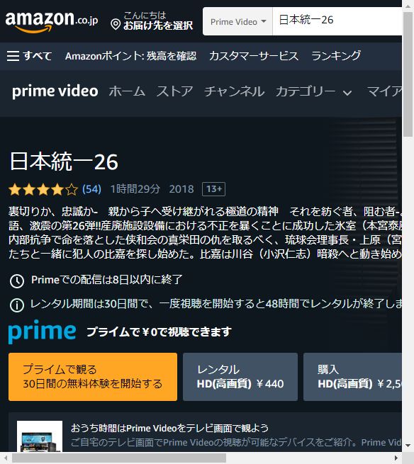 Amazonプライムビデオで映画「日本統一26」をフルで無料視聴