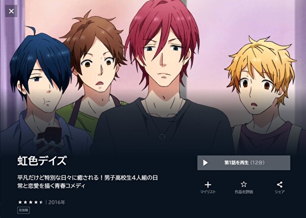 U-NEXTでアニメ「虹色デイズ」の動画を無料トライアルで全話視聴