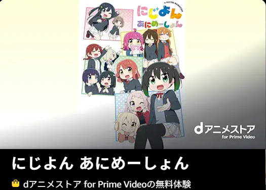 2026年3月現在、30日間の無料トライアルに登録すれば、アニメ「にじよん あにめーしょん」を追加料金なしで全話視聴できます。