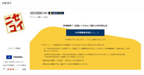 TSUTAYA DISCASで映画「ニセコイ」をDVDレンタルで無料視聴