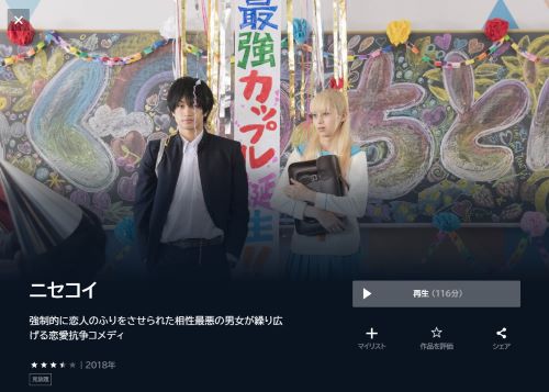 Netflixで映画「ニセコイ」を配信しているか調査しました。