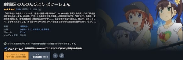 Amazonプライムビデオでも映画「劇場版 のんのんびより ばけーしょん」はフルで視聴することができます。