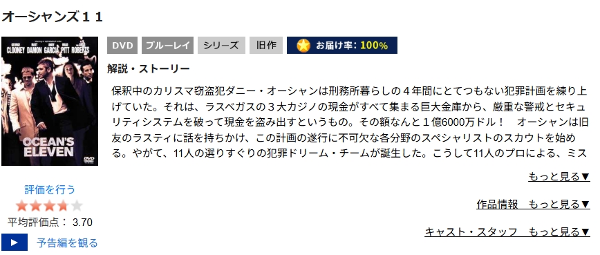 TSUTAYA DISCASで映画「オーシャンズ11」をDVDレンタルで無料視聴