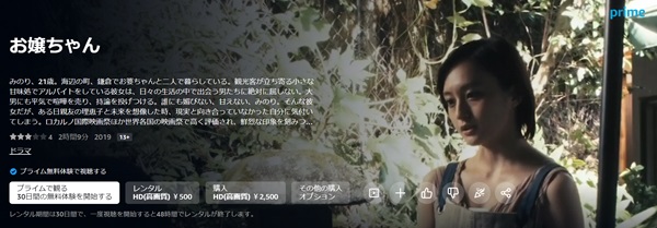 Amazonプライムビデオは、30日間のお試し無料期間があり「お嬢ちゃん」の映画をフルで視聴することができます。