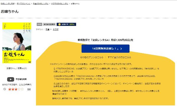 そして、映画「お嬢ちゃん」はツタヤディスカスで配信しているので、無料でDVDレンタルが可能です。