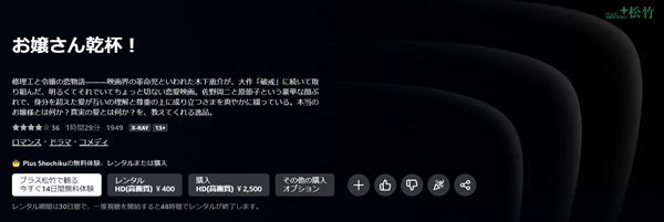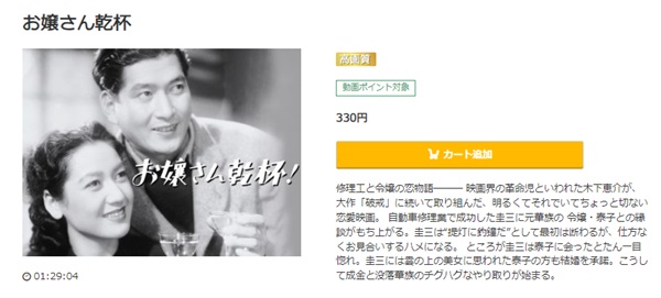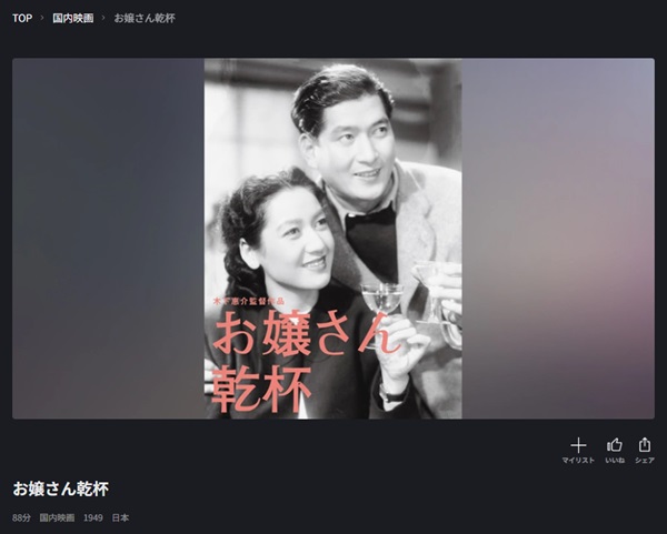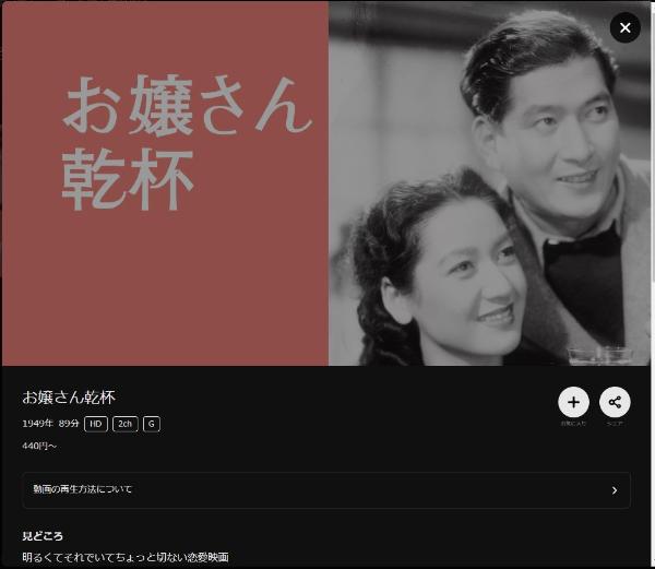 - 映画「お嬢さん乾杯」がフルで視聴可能。