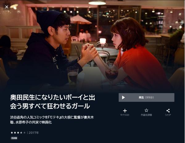 DMMTVで映画「奥田民生になりたいボーイと出会う男すべて狂わせるガール」の動画をフルで無料視聴