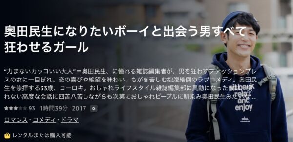 映画「奥田民生になりたいボーイと出会う男すべて狂わせるガール」はAmazonプライムビデオでもフルで視聴することができます。