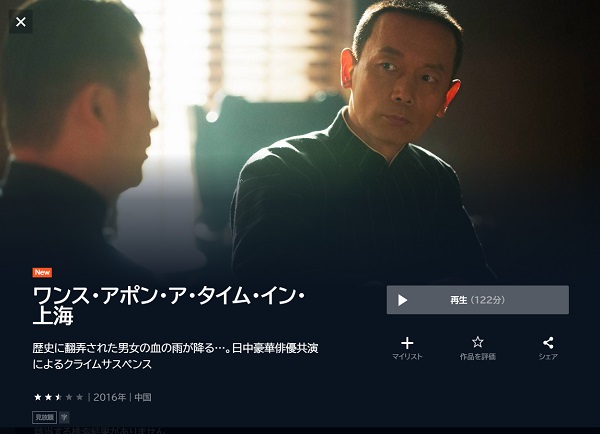 映画「ワンス・アポン・ア・タイム・イン・上海」が配信してる無料動画を調査しました。