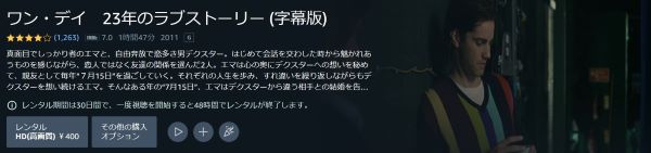 映画「ワン・デイ 23年のラブストーリー」はAmazonプライムビデオでもフルで視聴することができます。