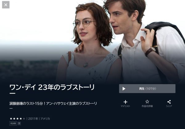 U-NEXTで映画「ワン・デイ 23年のラブストーリー」の動画を無料トライアルでフル視聴
