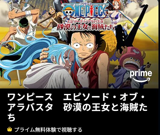 Amazonプライムで映画「ONE PIECE エピソード オブ アラバスタ 砂漠の王女と海賊たち」をトライアル期間にフル視聴