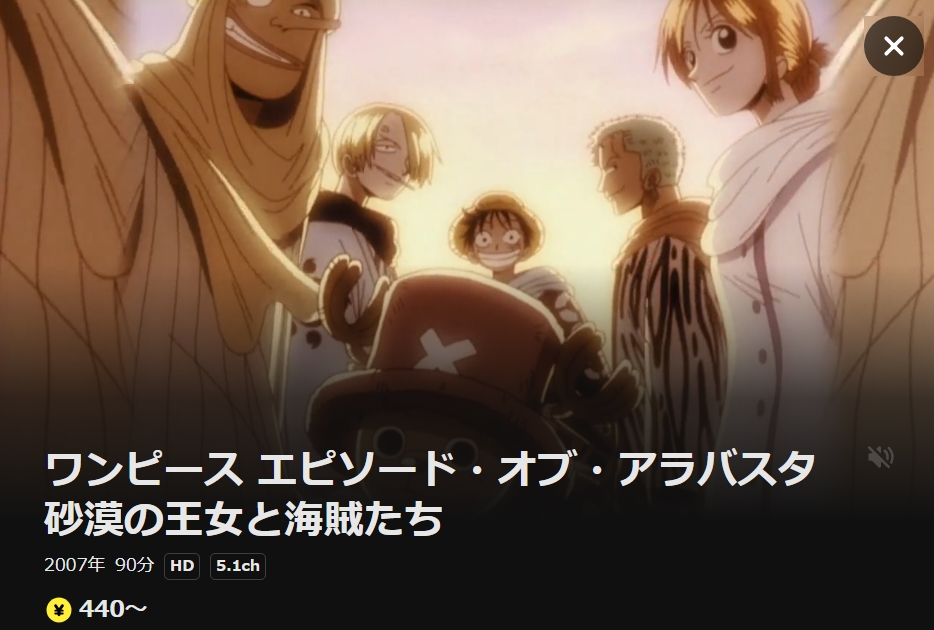 - 映画「ONE PIECE エピソード オブ アラバスタ 砂漠の王女と海賊たち」がフルで視聴可能。