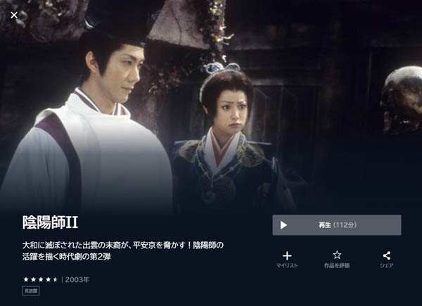 ただ、「陰陽師2」の映画は配信していなく、フルで無料視聴することができません。
