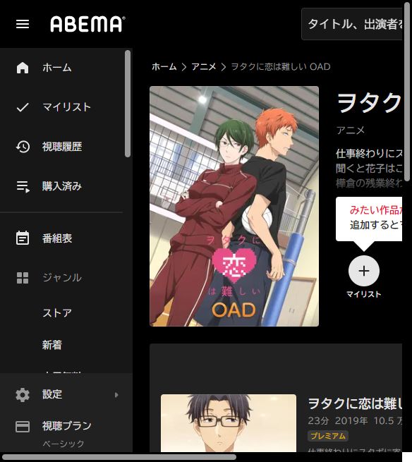 お試し期間の2週間でアニメ以外も視聴できるABEMA。アニメ「ヲタクに恋は難しい OAD」を全話視聴した後も楽しめるので是非、おためしください。