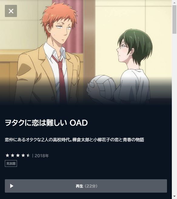 Netflixでアニメ「ヲタクに恋は難しい OAD」の動画の配信予定