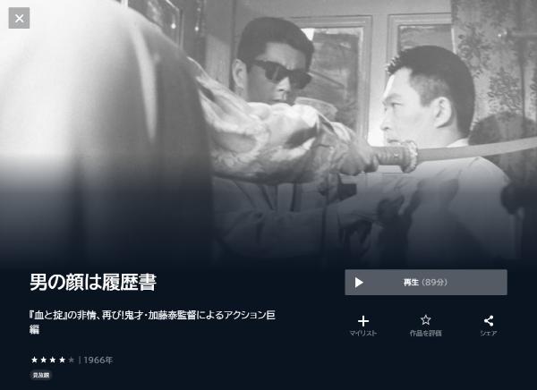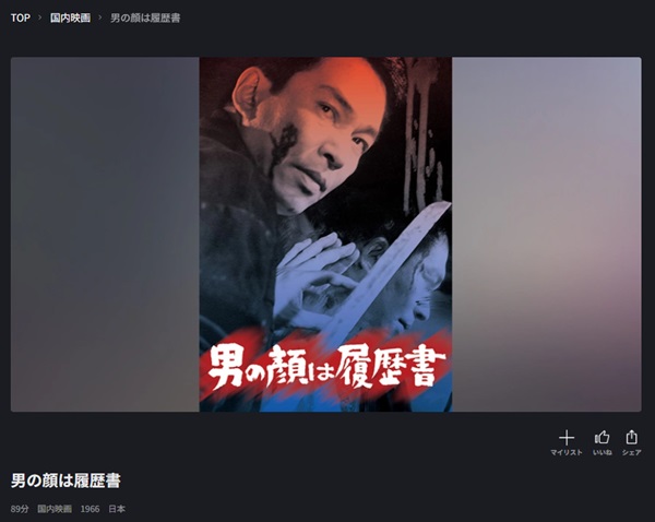 - 映画「男の顔は履歴書」がフルで視聴可能。