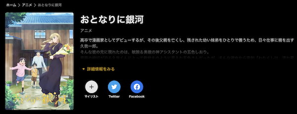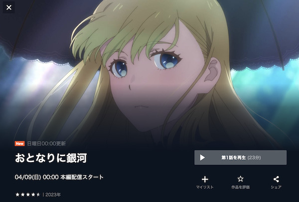 Netflixでアニメ「おとなりに銀河」の動画の配信予定