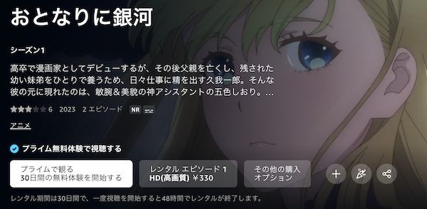 人気の動画配信サイトAmazonプライムでも、アニメ「おとなりに銀河」を視聴できるか調査しました。