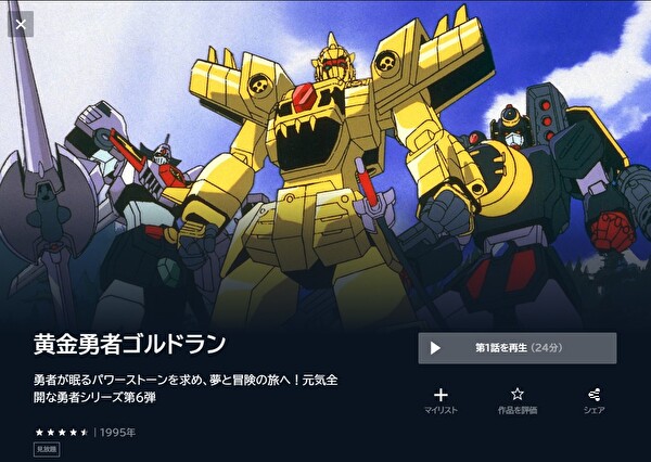 - 「黄金勇者ゴルドラン」が全話見放題で視聴可能