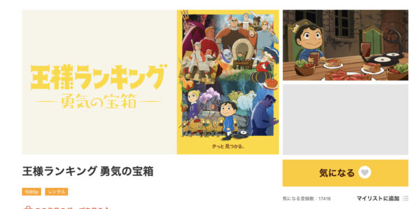アニメの劇場版や映画も配信してるので、30日間の無料期間を「王様ランキング 勇気の宝箱」以外も楽しめます。