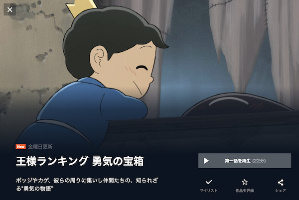 Netflixでは、アニメ「王様ランキング 勇気の宝箱」は配信されていませんでした。
