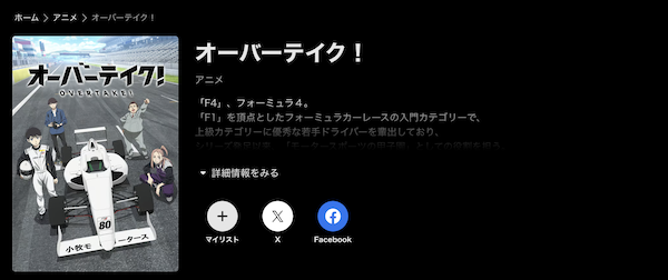- 「オーバーテイク!」が全話見放題で視聴可能