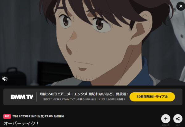 初回お試し期間が30日間あり、2024年11月現在、アニメ「オーバーテイク!」の配信中でありフルで1話〜最終話(12話)まで見ることができます。