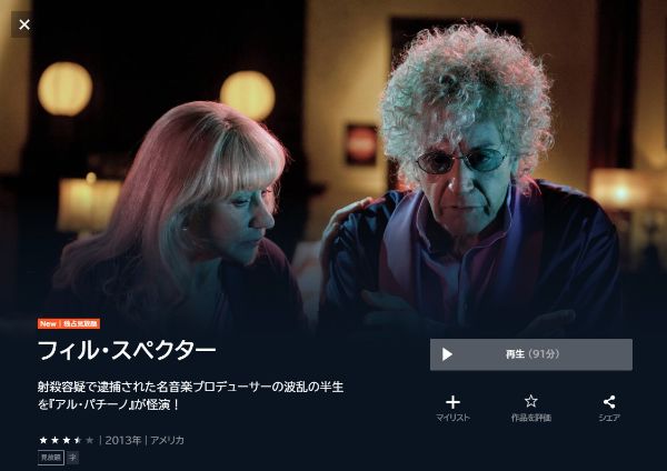 映画「フィル・スペクター」が配信されていて、フルで視聴できるおすすめ動画配信サイトは、1つになります。