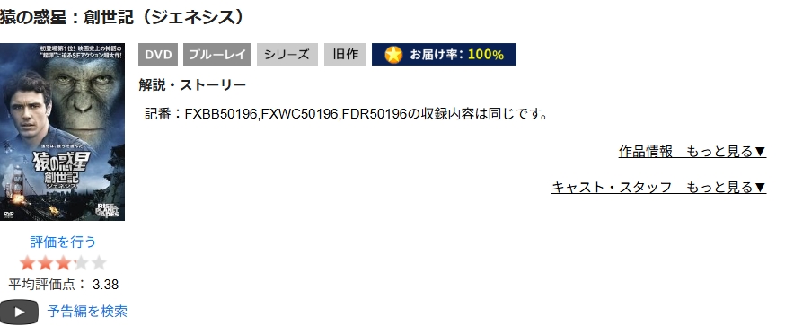 TSUTAYA DISCASで映画「猿の惑星:創世記(ジェネシス)」をDVDレンタルでフル視聴