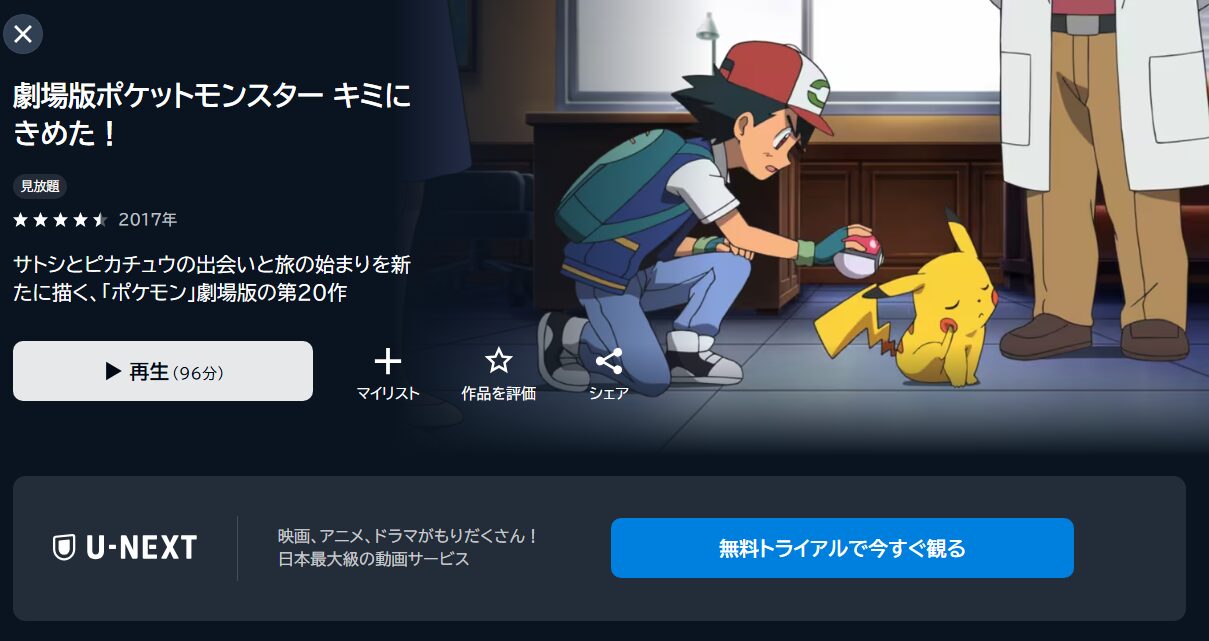 U-NEXTで映画「劇場版ポケットモンスター キミにきめた!」の配信をフル視聴