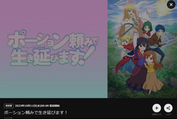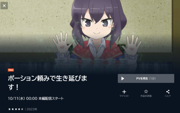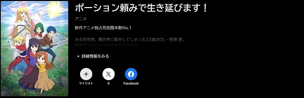 U-NEXTでアニメ「ポーション頼みで生き延びます!」の動画を全話視聴