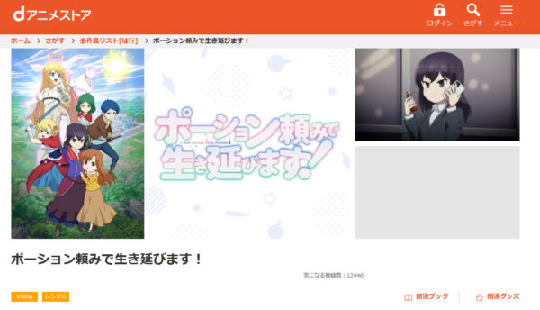 またdアニメストアは、アニメ「ポーション頼みで生き延びます!」のシリーズや関連動画を全話視聴できます。