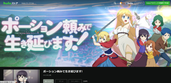 Huluでアニメ「ポーション頼みで生き延びます!」の動画を全話視聴